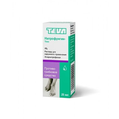 НИТРОФУНГИН-ТЕВА 1% 25МЛ. №1 СПИРТ. Р-Р ФЛ.