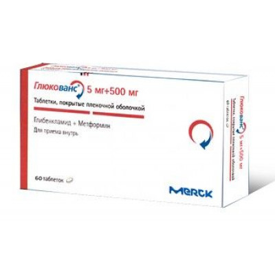 ГЛЮКОВАНС 500МГ+5МГ. №60 ТАБ. П/О /НИКОМЕД/