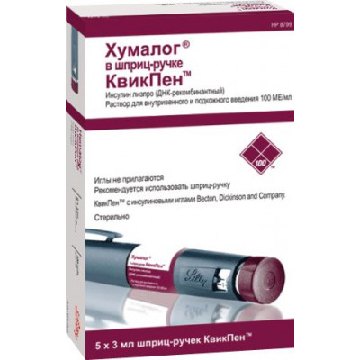 ХУМАЛОГ 100МЕ/МЛ. 3МЛ. №5 Р-Р Д/В/В,П/К. ШПРИЦ-РУЧКА КВИК-ПЕН /ЭЛИ ЛИЛЛИ/