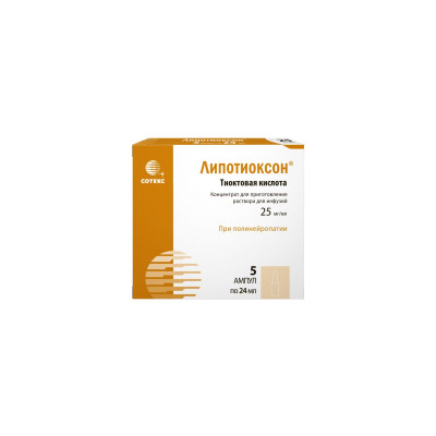 ЛИПОТИОКСОН 25МГ/МЛ. 24МЛ. №5 КОНЦ. Д/Р-РА Д/ИНФ. АМП. /СОТЕКС/