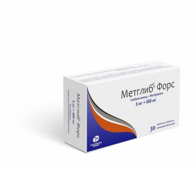 МЕТГЛИБ ФОРС 5МГ.+500МГ. №30 ТАБ. П/О /КАНОНФАРМА/РАДУГА ПРОДАКШН/