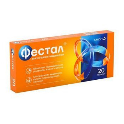 При одновременном применении с препаратом Фестал® усиливается всасывание ПАСК (п-аминосалициловой кислоты), сульфаниламидов, антибиотиков. Длительный прием панкреатина может уменьшать всасывание препаратов железа. Одновременное применение антацидных средств, содержащих кальция карбонат и/или магния гидроксид, может уменьшать действие панкреатина. Циметидин может усиливать действие панкреатина. Панкреатин может уменьшать действие акарбозы, поэтому не следует применять одновременно препарат Фестал® и акарбозу. Панкреатин может снижать всасывание фолиевой кислоты.
