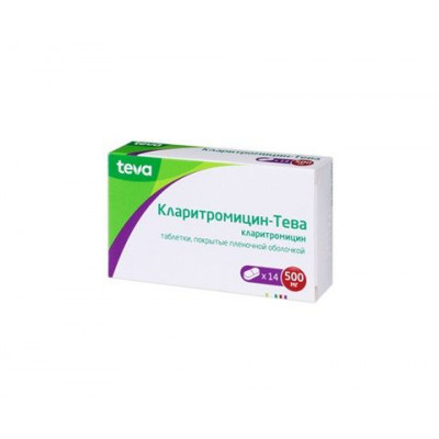 КЛАРИТРОМИЦИН-ТЕВА 500МГ. №14 ТАБ. П/П/О /ПЛИВА/