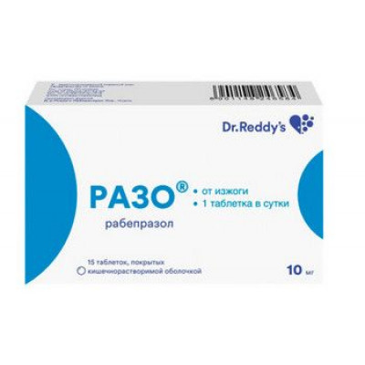 Таблетки принимают внутрь целиком, не разжевывая и не измельчая. Установлено, что ни время суток, ни прием пищи не влияют на активность рабепразола. При язвенной болезни желудка в стадии обострения и язве анастомоза рекомендуется принимать внутрь по 10 мг или по 20 мг один раз в день. Обычно излечение наступает после 6 недель терапии, однако в некоторых случаях длительность лечения может быть увеличена еще на 6 недель. При язвенной болезни двенадцатиперстной кишки в стадии обострения рекомендуется принимать внутрь по 20 мг один раз в день. В некоторых случаях лечебный эффект наступает при приеме 10 мг один раз в день. Длительность лечения составляет от 2 до 4 недель. В случае необходимости длительность лечения может быть увеличена еще на 4 недели. При лечении эрозивной гастроэзофагеальной рефлюксной болезни или рефлюкс-эзофагите рекомендуется принимать внутрь по 10 мг или по 20 мг один раз в день. Длительность лечения составляет от 4 до 8 недель. В случае необходимости длительность лечения может быть увеличена еще на 8 недель. При поддерживающей терапии гастроэзофагеальной рефлюксной болезни рекомендуется принимать внутрь по 10 мг или по 20 мг один раз в день. Длительность лечения зависит от состояния пациента. При неэрозивной гастроэзофагеальной рефлюксной болезни рекомендуется принимать внутрь по 10 мг или по 20 мг один раз в день. Если после четырех недель лечения симптомы не исчезают, следует провести дополнительное исследование пациента. После купирования симптомов для предупреждения их последующего возникновения следует принимать препарат внутрь в дозе 10 мг один раз в день. Для лечения синдрома Золлингера-Эллисона и других состояний, характеризующихся патологической гиперсекрецией дозу подбирают индивидуально. Начальная доза – 60 мг в день, затем дозу повышают и назначают препарат в дозе до 100 мг в день при однократном приеме или по 60 мг два раза в день. Для некоторых пациентов дробное дозирование препарата является предпочтительным. Лечение должно продолжаться по мере клинической необходимости. У некоторых больных с синдромом Золлингера-Эллисона длительность лечения рабепразолом может составлять до одного года. Для эрадикации Helicobacter pylori рекомендуется принимать внутрь по 20 мг два раза в день по определенной схеме с соответствующей комбинацией антибиотиков. Длительность лечения составляет 7 дней. Пациенты с почечной и печеночной недостаточностью. Коррекция дозы пациентам с почечной недостаточностью не требуется. У пациентов с легкой и умеренной степенью печеночной недостаточности концентрация рабепразола в крови обычно выше, чем у здоровых пациентов. При назначении препарата Разо® пациентам с тяжелой степенью печеночной недостаточности следует соблюдать осторожность. Пожилые пациенты. Коррекция дозы не требуется. Дети. Безопасность и эффективность применения рабепразола у детей в возрасте 12 лет и старше установлена для краткосрочного (до 8 недель) лечения ГЭРБ. Рекомендуемая доза для детей в возрасте 12 лет и старше составляет 20 мг 1 раз в день продолжительностью до 8 недель. Безопасность и эффективность рабепразола для применения по другим показаниям не установлена для пациентов детского возраста.