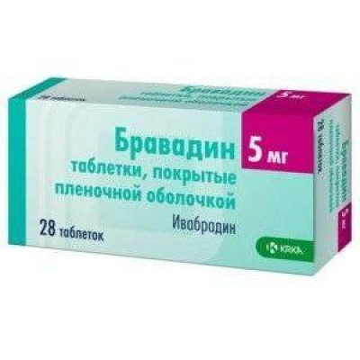 Если значение ЧСС находится в диапазоне 50–60 уд./мин, рекомендуется применять препарат Бравадин® в дозе 5 мг 2 раза в сутки.