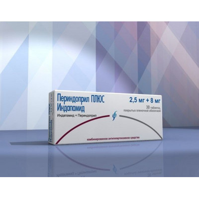 Комбинированное применение периндоприла и индапамида не изменяет их фармакокинетические параметры, по сравнению с раздельным приемом этих препаратов. Периндоприл Всасывание После приема внутрь периндоприл быстро всасывается из желудочно-кишечного тракта (ЖКТ). Биодоступность составляет 65-70%. Максимальная концентрация (Сmах) в плазме крови достигается через 3-4 ч после приема внутрь. Прием пищи уменьшает превращение периндоприла в периндоприлат и биодоступность периндоприла, поэтому его следует принимать 1 раз/сут утром, перед завтраком. При приеме периндоприла 1 раз/сут. Равновесная концентрация (Css) достигается в течение 4 дней. Распределение Связывание с белками плазмы крови периндоприлата имеет дозозависимый характер и составляет 20%. Периндоприлат легко проходит через гистогематические барьеры, исключая гематоэнцефалический барьер (ГЭБ). Не кумулирует. Метаболизм В печени подвергается метаболизму с образованием активного метаболита периндоприлата. Кроме того, образуется еще 5 неактивных метаболитов. Выведение Период полувыведения (Т1/2) периндоприла из плазмы крови составляет 1 ч. Т1/2 периндоприлата составляет около 17 ч. Выводится почками. Фармакокинетика у особых групп пациентов У пациентов пожилого возраста, у больных с почечной и сердечной недостаточностью выведение периндоприлата замедлено. Диализный клиренс периндоприлата составляет 70 мл/мин. Кинетика периндоприла изменена у пациентов с циррозом печени: печеночный клиренс снижен наполовину. Тем не менее, количество образующегося периндоприлата не уменьшается, что не требует коррекции дозы. Индапамид Всасывание После приема внутрь быстро и практически полностью всасывается из ЖКТ. Прием пищи несколько замедляет всасывание, но существенно не влияет на количество абсорбированного индапамида. После приема внутрь в однократной дозе Сmах в плазме крови достигается через 1 ч. Распределение Связывание с белками плазмы крови составляет 79%. Не кумулирует. Метаболизм Метаболизируется в печени. Выведение Т1/2 составляет от 14 до 24 ч. (в среднем 18 ч). Выводится почками (70%) преимущественно в виде метаболитов (фракция неизмененного препарата составляет около 5%) и кишечником с желчью в виде неактивных метаболитов (22%). Фармакокинетика в особых клинических случаях У пациентов с почечной недостаточностью фармакокинетические параметры индапамида существенно не изменяются.