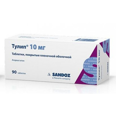 Метаболизируется преимущественно в печени под действием цитохрома P4503A4 c образованием фармакологически активных метаболитов (орто- и парагидроксилированных производных, продуктов бета-окисления). Тулип® (таблетки по 10 и 20 мг) вызывает снижение уровня общего холестерина на 29 и 33%, ЛПНП-холестерина — на 39 и 43%, аполипопротеина В на 32 и 35% и триглицеридов — на 14 и 26%. Уровень ЛПВП-холестерина при этом повышается соответственно на 6 и 9%. Выводится в основном с желчью после печеночного и/или внепеченочного метаболизма (аторвастатин не подвергается выраженной кишечно-печеночной рециркуляции, не выводится с помощью гемодиализа). T1/2 — 14 ч. Ингибирующая активность в отношении ГМГ-КоА-редуктазы сохраняется около 20–30 ч благодаря наличию активных метаболитов. Менее 2% от принятой внутрь дозы препарата определяется в моче.