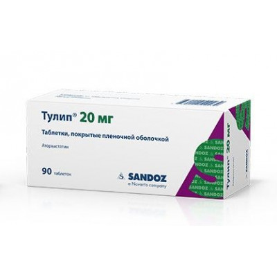 Метаболизируется преимущественно в печени под действием цитохрома P4503A4 c образованием фармакологически активных метаболитов (орто- и парагидроксилированных производных, продуктов бета-окисления). Тулип® (таблетки по 10 и 20 мг) вызывает снижение уровня общего холестерина на 29 и 33%, ЛПНП-холестерина — на 39 и 43%, аполипопротеина В на 32 и 35% и триглицеридов — на 14 и 26%. Уровень ЛПВП-холестерина при этом повышается соответственно на 6 и 9%. Выводится в основном с желчью после печеночного и/или внепеченочного метаболизма (аторвастатин не подвергается выраженной кишечно-печеночной рециркуляции, не выводится с помощью гемодиализа). T1/2 — 14 ч. Ингибирующая активность в отношении ГМГ-КоА-редуктазы сохраняется около 20–30 ч благодаря наличию активных метаболитов. Менее 2% от принятой внутрь дозы препарата определяется в моче.