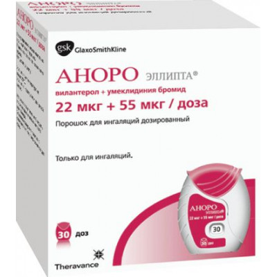 АНОРО ЭЛЛИПТА 22МКГ+55МКГ/ДОЗА 30ДОЗ ПОР. Д/ИНГ. ДОЗИР. /ГЛАКСО/