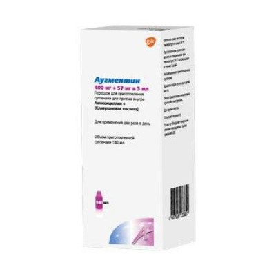 АУГМЕНТИН 400МГ.+57МГ/5МЛ. 25,2Г. 140МЛ. ПОР. Д/СУСП. Д/ПРИЕМА ВНУТРЬ ФЛ. /ГЛАКСО/