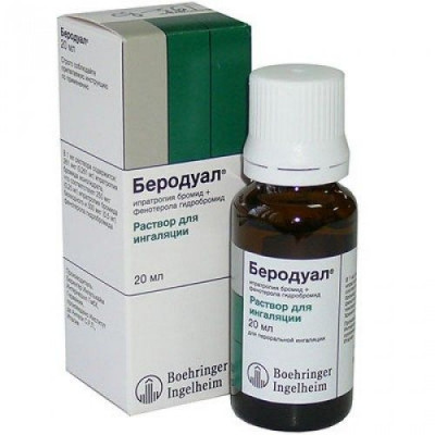Препарат Беродуал® содержит два компонента, обладающих бронхолитической активностью: ипратропия бромид — м-холиноблокатор и фенотерол — β2-адреномиметик. Бронходилатация при ингаляционном введении ипратропия бромида обусловлена главным образом, местным, а не системным антихолинергическим действием.