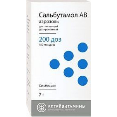 САЛЬБУТАМОЛ АВ 100МКГ/ДОЗА 200ДОЗ АЭРОЗОЛЬ Д/ИНГ. /АЛТАЙВИТАМИНЫ/