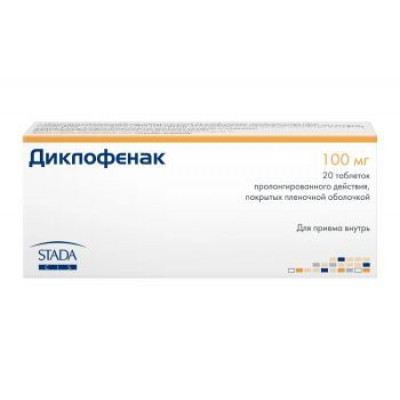 ДИКЛОФЕНАК 100МГ. №20 ТАБ.ПРОЛОНГ.ВЫСВ. П/П/О /НИЖФАРМ/ХЕМОФАРМ/