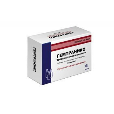 ТРАНЕКСАМОВАЯ КИСЛОТА 50МГ/МЛ. 5МЛ. №10 Р-Р Д/В/В АМП. /МОСКОВСКИЙ ЭЗ/