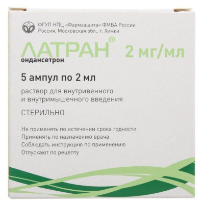 Латран — противорвотное средство из группы антагонистов серотонина. Фармакодинамика. Селективно блокирует 5-НТ3рецепторы центральной и периферической нервной системы, в т.ч. в нейронных центрах, регулирующих осуществление рвотных рефлексов. Препарат обладает анксиолитической активностью, не вызывает седативного эффекта, нарушения координации движений или снижения активности и работоспособности. Нивелирует соматические и психопатологические симптомы при алкогольном абстинентном синдроме легкой и средней степени тяжести.