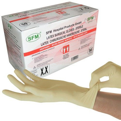 СФМ ПЕРЧАТКИ ХИРУРГ. СТЕР. ЛАТ. Н/ОПУДР. ТЕКСТ. АНАТОМ. Р.7 №100 (50ПАР) [SFM]