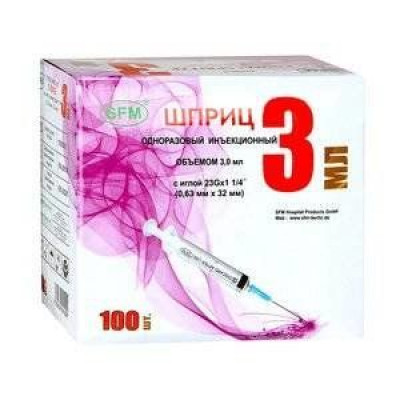 СФМ ШПРИЦ 3МЛ. 3-Х КОМП. 0,6Х30ММ 23G №100 [SFM]