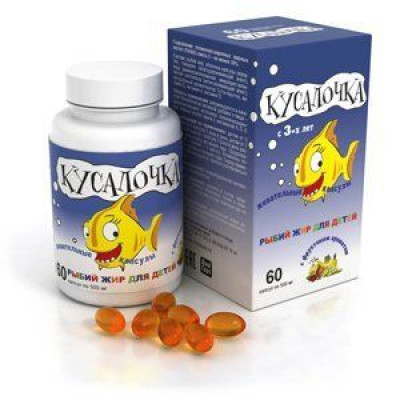 КУСАЛОЧКА – это вкусный рыбий жир в жевательных капсулах. КУСАЛОЧКУ можно РАСКУСИТЬ и ПОЖЕВАТЬ.