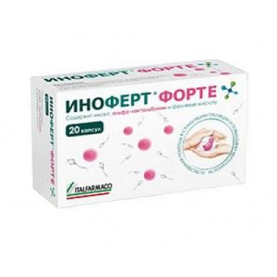 ИНОФЕРТ ФОРТЕ - биологически активная добавка к пище – дополнительный источник инозита (витамина В8) и фолиевой кислоты (витамина В9), формула, усиленная альфа-лактальбумином, оказывает естественную помощь в стимуляции овуляции, восстановлении менструального цикла и улучшении фертильности (способности женщины к деторождению). А также может помочь в снижении веса, уменьшении избыточного роста волос, акне и других проблем.