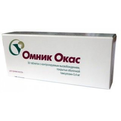 Тамсулозин является специфическим конкурентным блокатором постсинаптических α1-адренорецепторов, особенно подтипов α1A и α1D, отвечающих за расслабление гладкой мускулатуры предстательной железы, шейки мочевого пузыря и простатической части уретры. Омник Окас в дозировке 0,4 мг увеличивает максимальную скорость мочеиспускания, а также снижает тонус гладкой мускулатуры предстательной железы и уретры, улучшая отток мочи и т.о. уменьшая выраженность симптомов опорожнения. Омник Окас также уменьшает выраженность симптомов наполнения, в развитии которых важную роль играет гиперактивность детрузора.