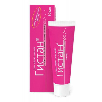 при аллергических высыпаниях на коже лица, рук итела, при кожном зуде, крапивнице, везикулезных (пузырьковых) аллергических проявлениях на коже. ГИСТАН- эффективенпри укусах насекомых, он быстро устраняет зуд и волдыри