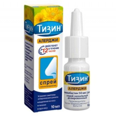 Левокабастин — селективный блокатор Н1-гистаминовых рецепторов с продолжительным действием. Местный эффект наступает через 5 минут, а действие продолжается в течение 12 часов. После интраназального введения назальный спрей «ТИЗИН® Алерджи» устраняет симптомы аллергического ринита: выделения из носа, чихание, зуд в носовой полости.