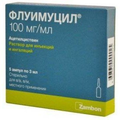 ФЛУИМУЦИЛ 100МГ/МЛ. 3МЛ. №5 Р-Р Д/В/В,ИНГ. АМП. /ЗАМБОН/