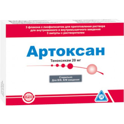 В/м или в/в введение применяется для кратковременного (1–2 дня) лечения в дозе 20 мг/сут. При необходимости дальнейшей терапии переходят на пероральные лекарственные формы теноксикама.