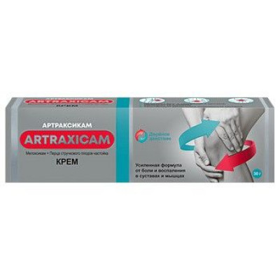Артраксикам оказывает противовоспалительное, обезболивающее, противоотечное действие. Может вызвать легкую локальную гиперемию кожи, не оказывая при этом выраженного раздражающего действия на кожные покровы. Артраксикам уменьшает боль в суставах (в том числе в суставах позвоночника) и в мышцах в покое и при движении, способствует увеличению объема движения суставов (в области нанесения крема). Уменьшает утреннюю скованность и припухлость суставов. Мелоксикам избирательно ингибирует циклооксигеназу 2, нарушает метаболизм арахидоновой кислоты, уменьшает в очаге воспаления количество простагландинов (медиаторов боли и воспаления). Настойка перца стручкового содержит капсаицин, обладающий раздражающим действием на чувствительные рецепторы кожи, что приводит к местному обезболивающему эффекту, к улучшению кровообращения в коже и подкожной клетчатке. Улучшение местного кровотока сопровождается усилением кровообращения в подлежащих тканях, что способствует удалению субстрата воспаления из патологического очага. При совместном воздействии мелоксикам и капсаицин оказывают больший эффект за счет синергизма по сравнению с индивидуальным эффектом каждого из этих компонентов. Благодаря оптимальному сочетанию компонентов Артраксикам оказывает усиленный обезболивающий и противовоспалительный эффект.