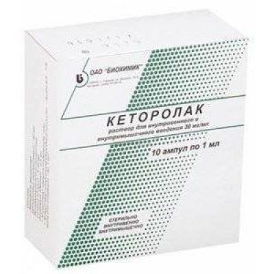 КЕТОРОЛАК 30МГ/МЛ. 1МЛ. №10 Р-Р Д/В/В,В/М АМП. /ПРОМОМЕД/БИОХИМИК/
