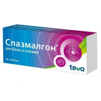 Спазмалгон® ? комбинированный препарат, в состав которого входят: ненаркотический анальгетик метамизол натрия, миотромное спазмолитическое средство питофенон и м-холиноблокирующее средство фенпивериния бромид. Сочетание компонентов препарата приводит к взаимному усилению их фармакологического действия: облегчению боли, расслаблению гладких мышц и снижению повышенной температуры тела. Фармакодинамика Метамизол натрия ? производное пиразолона, оказывает анальгезирующее, жаропонижающее и противовоспалительное действие. Согласно результам исследований метамизол натрия и его активный метаболит (4N-метиламиноантипирин) обладают центральным и периферическим механизмом действия. Неселективно ингибирует циклооксигеназу и снижает образование простагландинов из арахидоновой кислоты. Питофенона гидрохлорид, подобно папаверину, оказывает прямое миотропное действие на гладкую мускулатуру внутренних органов и вызывает ее расслабление. Фенпивериния бромид за счет м-холиноблокирующего действия оказывает дополнительное расслабляющее воздействие на гладкую мускулатуру.