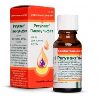 РЕГУЛАКС ПИКОСУЛЬФАТ 7,5МГ/МЛ. 20МЛ. КАПЛИ Д/ПРИЕМА ВНУТРЬ ФЛ.
