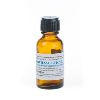 Состав на 100 мл препарата: Активное вещество: Борная кислота 3,0 г. Вспомогательное вещество: Этанол (этиловый спирт) 70 % до 100 мл.