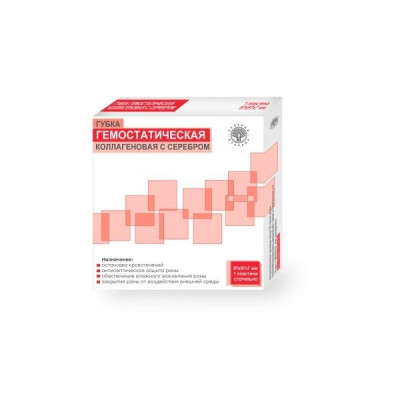 ГУБКА ГЕМОСТАТ. КОЛЛАГЕН. С СЕРЕБРОМ 97Х97Х7ММ №1 /ЗЕЛЕНАЯ ДУБРАВА/