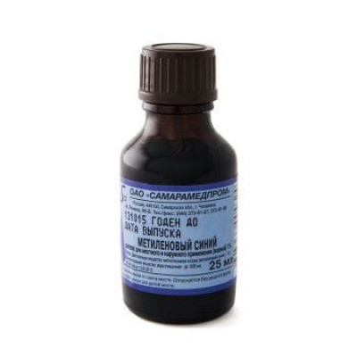 МЕТИЛЕНОВЫЙ СИНИЙ 1% 25МЛ. №1 Р-Р ВОДНЫЙ Д/МЕСТ. И НАРУЖ.ПРИМ. ФЛ. /САМАРАМЕДПРОМ/ЖЕНЕЛ РД/