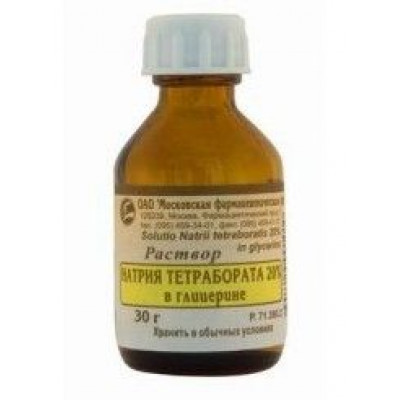 НАТРИЯ ТЕТРАБОРАТ 20% 30МЛ. Р-Р В ГЛИЦ. Д/МЕСТ. И НАРУЖ.ПРИМ. ФЛ. /МОСФАРМА/