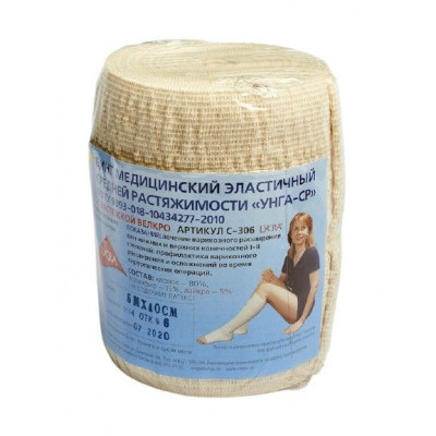 Бинт медицинский эластичный «УНГА-СР» (I-ый класс компрессии) предназначен для профилактики и лечения начальной стадии, I-ой, II-ой степеней варикозного расширения вен верхних и нижних конечностей.