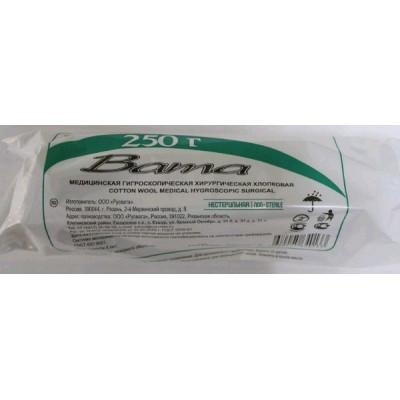 ВАТА МЕД. ХИРУРГ. Н/СТЕР. ГИГРОСК. 250Г. /РУСВАТА/