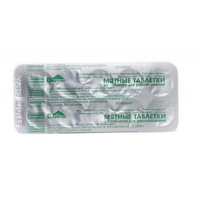 Состав на одну таблетку: Активный компонент: Мяты перечной масло (Мяты перечной листьев масло) – 0,0025 г. Вспомогательные вещества: Сахар (сахароза) – 0,5917 г, Тальк – 0,0029 г, Кальция стеарат – 0,0029 г. Масса таблетки – 0,6 г.