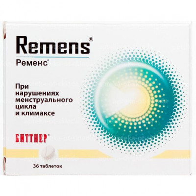 Комплексный гомеопатический препарат. Регулирует баланс системы гипоталамус-гипофиз-яичники, нормализует менструальный цикл, регулирует интенсивность кровотечений, уменьшает проявления альгодисменореи, ослабляет проявления синдрома предменструального напряжения (эмоциональную лабильность, раздражительность, агрессивность, депрессию, плаксивость), уменьшает отечный синдром. При климактерическом синдроме Ременс уменьшает психоэмоциональные проявления (эмоциональную лабильность, обидчивость, агрессивность, депрессию, плаксивость, нарушения сна), вегетативные (приливы, гипергидроз, приступы сердцебиения, кардиалгии, колебания АД) и обменные нарушения (нормализует жировой обмен, препятствует нарастанию массы тела, уменьшает риск развития сердечно-сосудистых заболеваний). Ременс оказывает противовоспалительное действие на ткани яичников и эндометрий, улучшает микроциркуляцию органов малого таза.