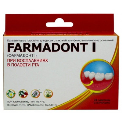 ФАРМАДОНТ-1 БИОПЛАСТИНЫ Д/ДЕСЕН П/ВОСП. №24 (МАКЛЕЙЯ+ШАЛФЕЙ+ШИПОВНИК+РОМАШКА) [FARMADONT]