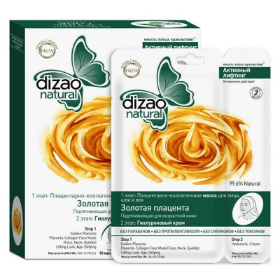 ДИЗАО НАТУРАЛ МАСКА 2-Х ЭТАПНАЯ ПЛАЦ-КОЛЛАГ. Д/ЛИЦА,ШЕИ И ВЕК ЗОЛОТАЯ ПЛАЦЕНТА+ГИАЛУР.КРЕМ 36Г. №10 [DIZAO]
