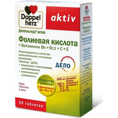 ДОППЕЛЬГЕРЦ АКТИВ ФОЛИЕВАЯ К-ТА+ВИТ.С+ВИТ.Е+ВИТ.В6+ВИТ.В12 №30 ТАБ.