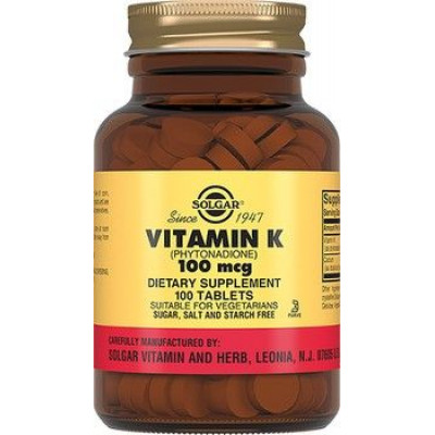 СОЛГАР ВИТАМИН К1 100МКГ. №100 ТАБ. ФЛ. [SOLGAR]