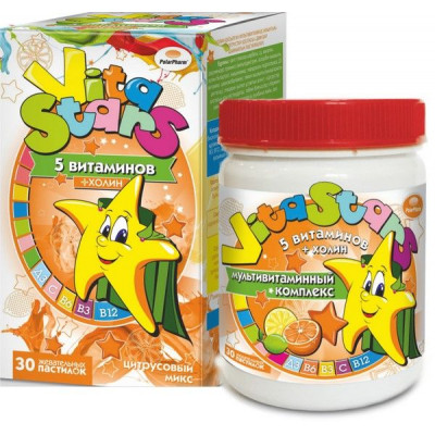 ВИТАСТАРС МУЛЬТИВИТ. КОМПЛЕКС 5 ВИТАМИНОВ С ХОЛИНОМ ЦИТРУС. МИКС №30 ПАСТИЛКИ ЖЕВ. [VITASTARS]