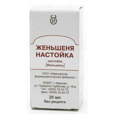 ЖЕНЬШЕНЯ НАСТОЙКА 25МЛ. ФЛ. И/У /ИВАНОВСКАЯ ФФ/